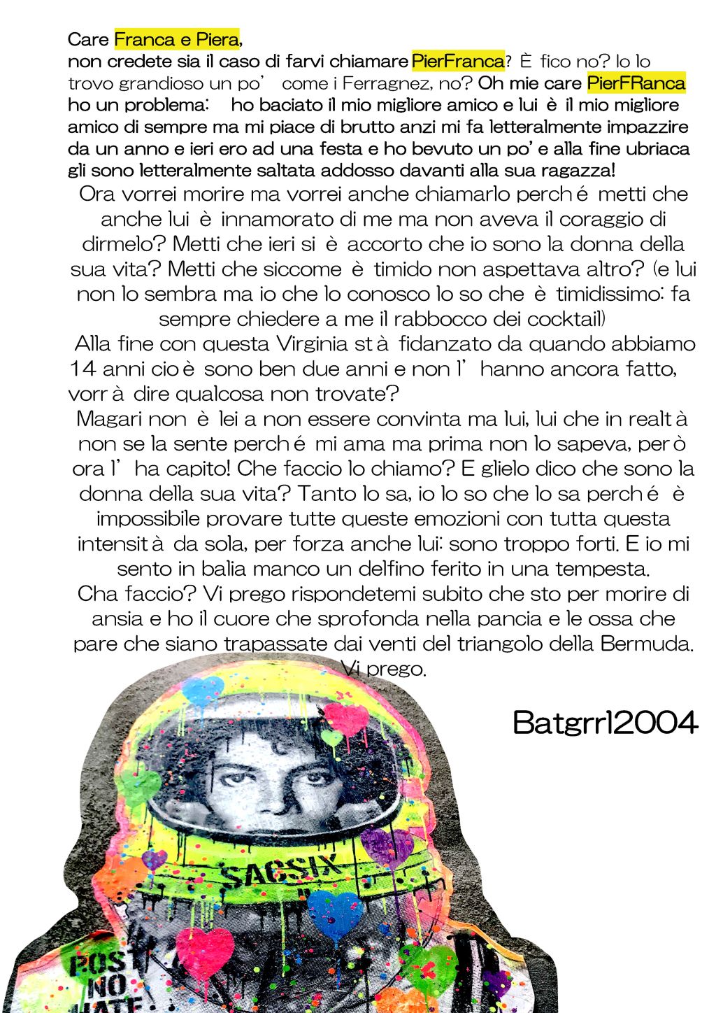 Con simpatia (che mi fa un po’ tenerezza e un po’ pena che avere 16 anni è davvero tragico), ricordandoti che non sono in nessun modo la tua nuova migliore amica,